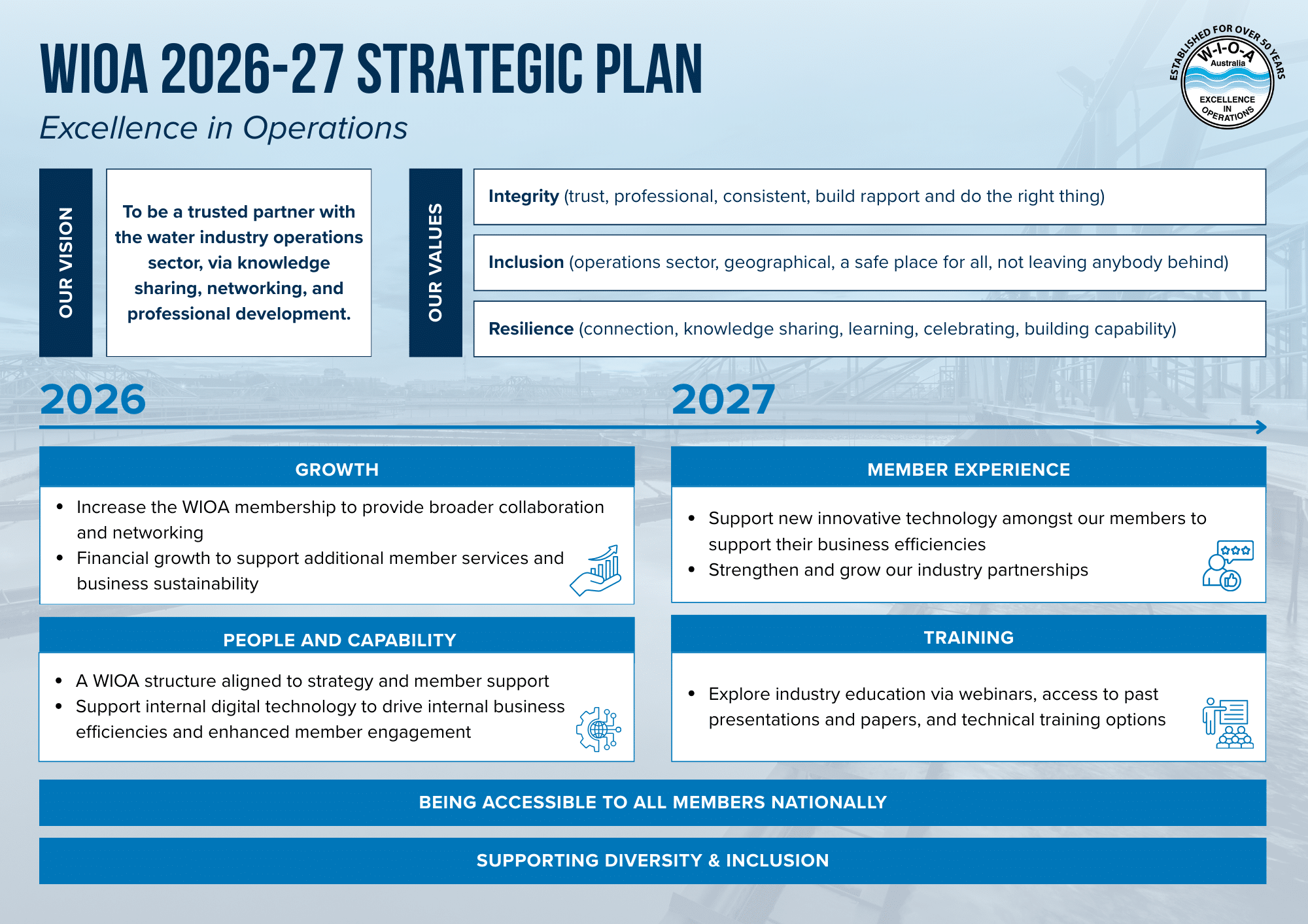 To achieve excellence in water operations nationally, through knowledge sharing, networking and personal development.